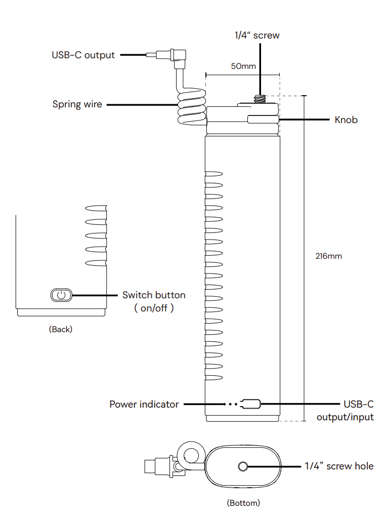 Charging port automatically detects device insertion and activates charging without the need to press a button.